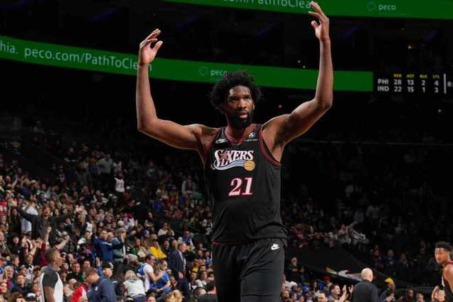 - 恩比德39+9赛季最强76人力克步行者 乔治23+5+6探花22分