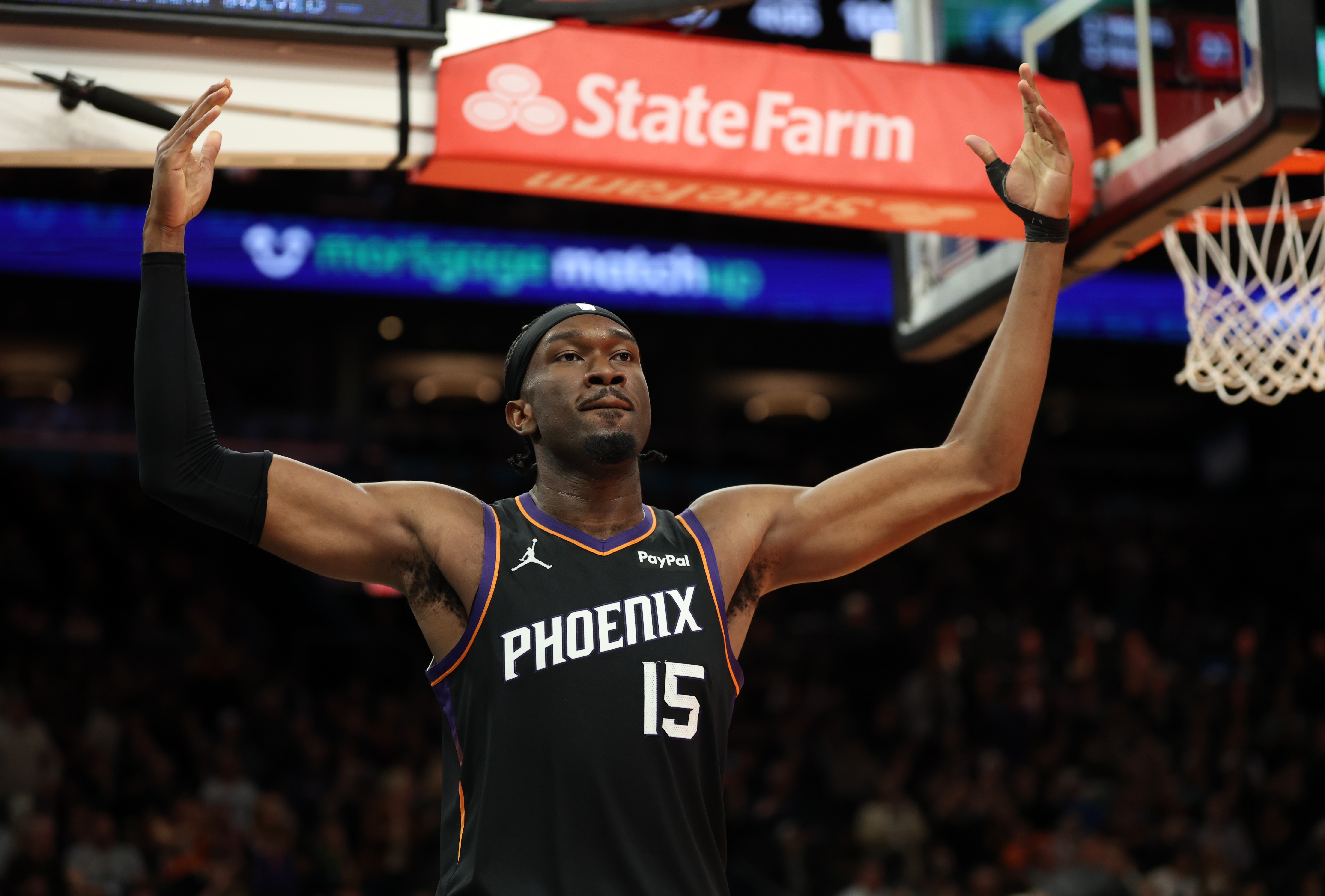 布克表示:“他对我们攻防两端都至关重要,他是我们的防守支柱,在场上不断沟通,快速奔跑,作为一个大个子,他的身体状态极佳,令人印象深刻。”