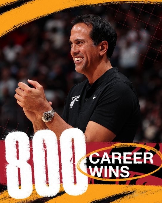 11月28日讯 昨日,热火主场106-103击败雄鹿,这是主教练斯波生涯第800胜。