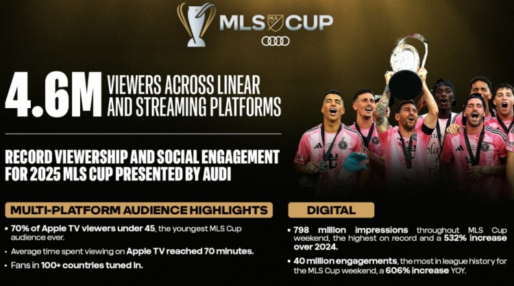 据美职联官方统计,美职联总决赛创下收视和社交互动新纪录。